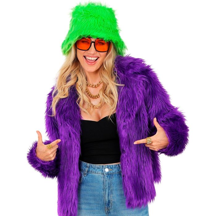 Maak een statement met onze dames bontjas paars - kort model! Dit kort bontjasje is perfect voor Carnaval en festivals. Het pluche materiaal houdt je warm en zorgt voor een luxe uitstraling. Combineer het met de bijpassende pluche beenwarmers voor een complete look die je vrienden zal jaloers maken.