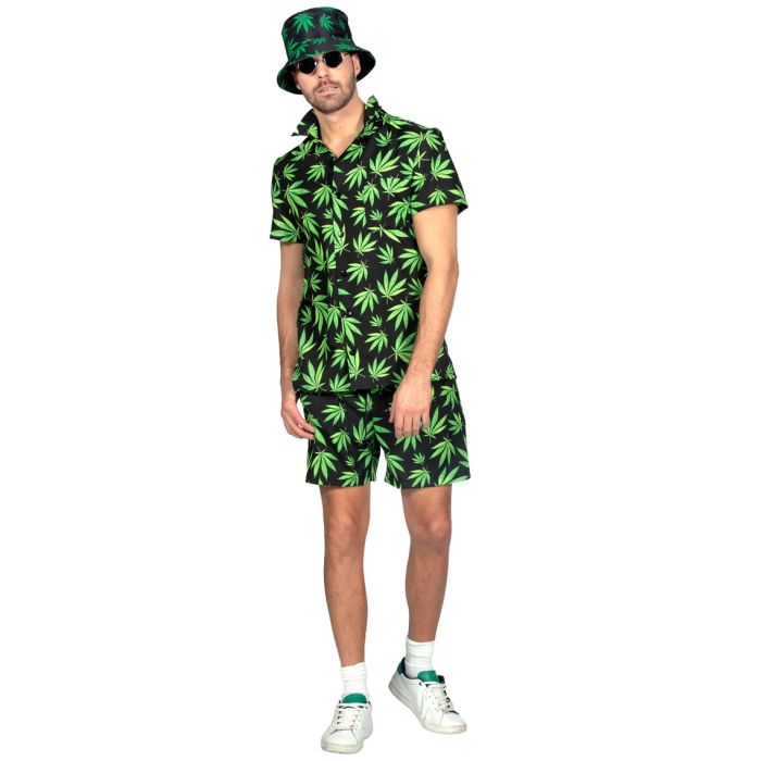 Maak je klaar voor de zomer met de Festival duo outfit wietblad 2 delig van Wilbers & Wilbers. Deze stijlvolle outfit, vervaardigd uit een soepel luxe stofje, is perfect voor elk zomers feestje of festival, en ook een leuke keuze voor Carnaval. De set bestaat uit een trendy top en een comfortabele broek, zodat je er altijd goed uitziet terwijl je je vrij kunt bewegen.