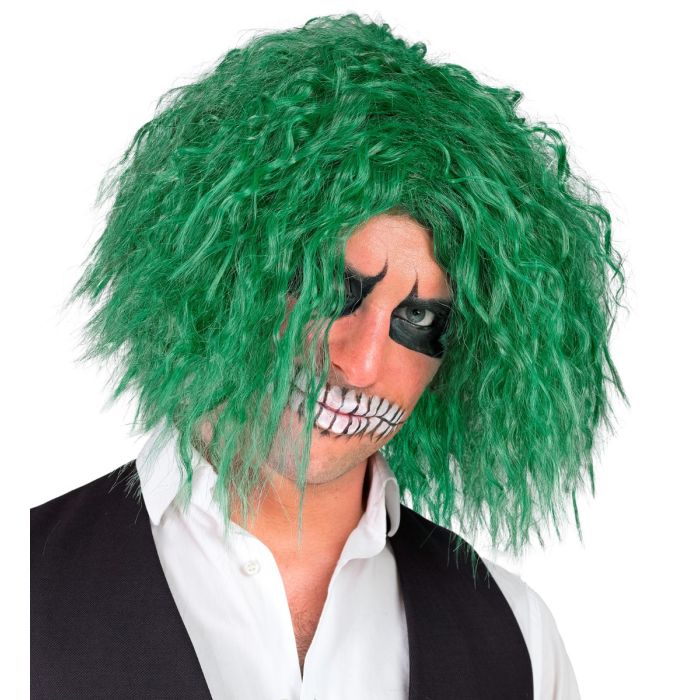 Maak je Halloween compleet met de Groene pruik Sinister! Deze opvallende Halloween pruik is perfect voor jouw Killer clown look. Met zijn levendige groene kleur voegt hij een speelse twist toe aan je kostuum. Combineer het met een van onze bijpassende clownspakken, ook te koop in de webshop, en je bent klaar voor een griezelige avond vol plezier!
