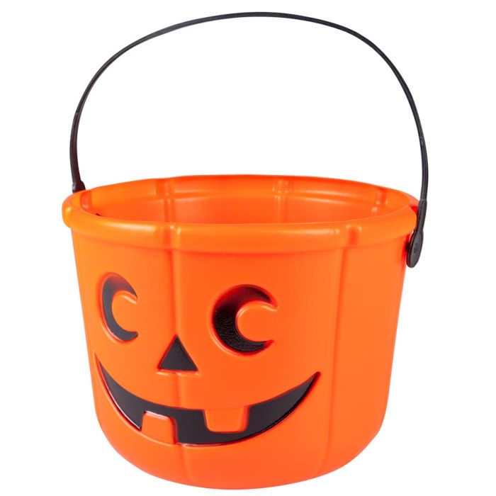 Een leuke pompoen emmer waar je snoepjes in kan doen tijdens de Halloween. Het emmertje is niet supergroot, namelijk 14x18cm.