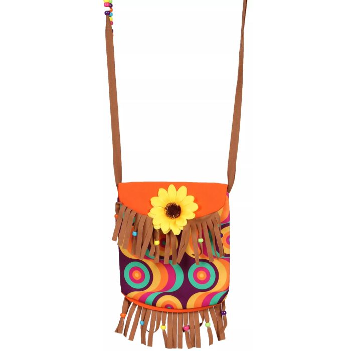 Een te gek schoudertasje. Te gebruiken voor diverse thema's zoals Hippie, Flower Power, fout feest, carnaval en nog veel meer......
