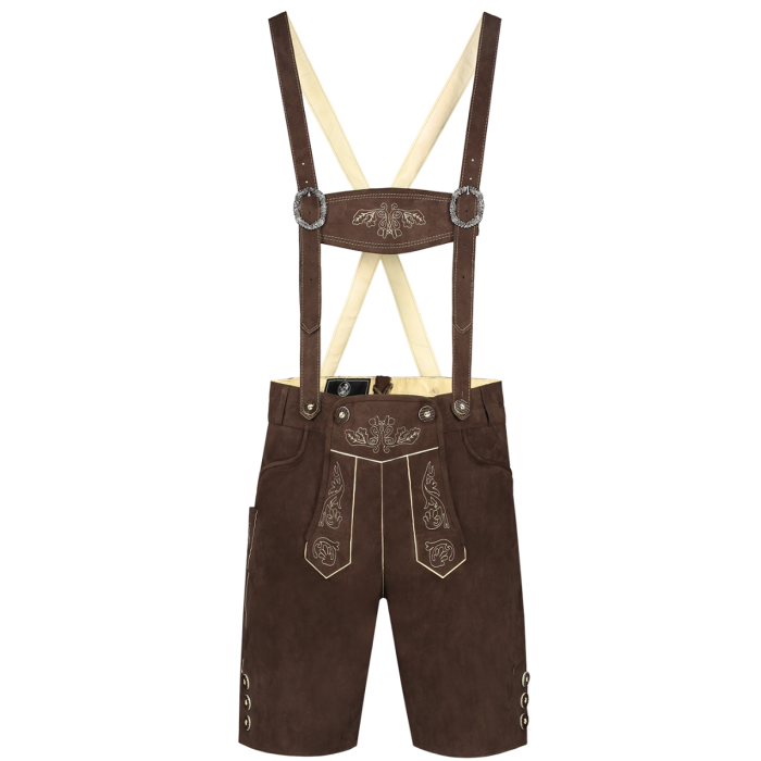 De donkerbruine kleur geeft een elegante uitstraling en is gemakkelijk te combineren met zowel een rode of blauwe Tirolerblouse. De Imitatie Suede Lederhose is niet alleen modieus, maar ook praktisch; de stof is eenvoudig te onderhouden en blijft er lang mooi uitzien.