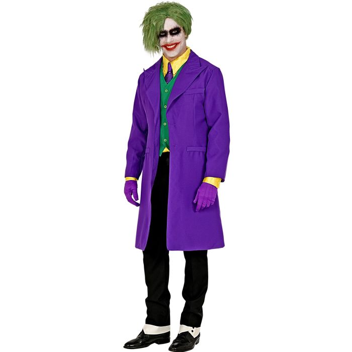 Dit Joker pak bestaat uit 2 delen. De lange jas en de vest. (De stropdas, blouse en broek zitten niet inbegrepen bij dit kostuum).