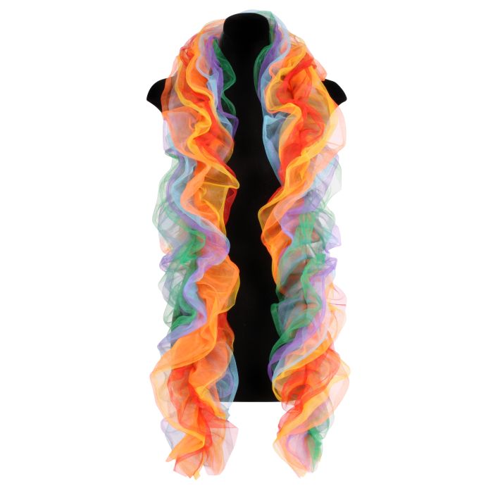 Luxe Regenboog kleuren organza boa. Eens wat anders deze boa in organza stof. Een voordeel is dat de sjaal niet pluist en prikt. Echt een top carnavals product om te dragen bij jouw carnavalsoutfit.