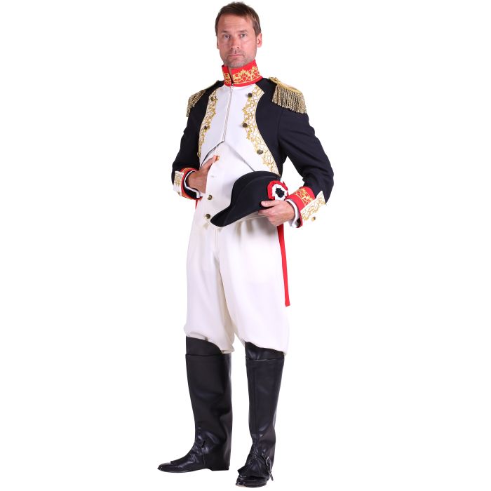 Dit Napoleon kostuum bestaat uit een broek, vest en jas. De Napoleon steek en de zwarte beenkappen zijn eventueel los te bestellen.