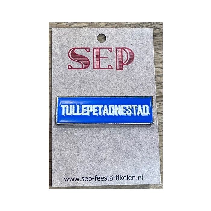 Maak een statement met ons pinneke gemeente naambord TULLETAONESTAD! Dit unieke ontwerp is alleen bij SEP verkrijgbaar en perfect voor de echte Tullepetaoner. Hang het aan je jas of accessoire tijdens het carnaval en laat zien waar je vandaan komt.