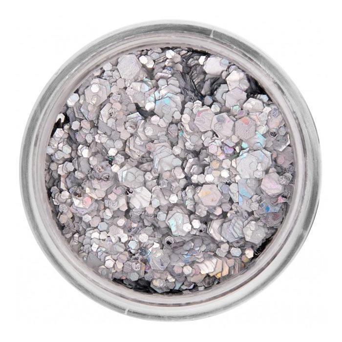 Te gekke glitters van het met PXP. Je kan het zo opbrengen op je huid en makkelijk te combineren met andere kleuren. De glitters zitten verpakt in een rond plastic doosje.